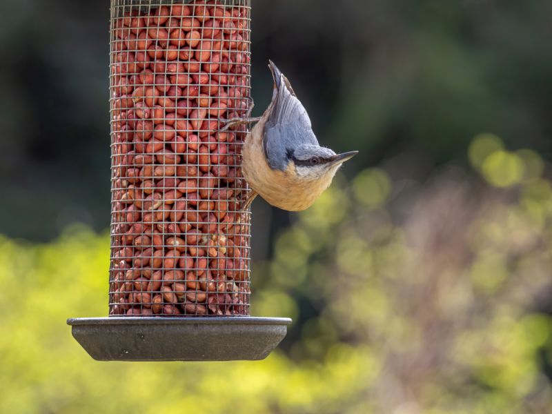 15. Put up a bird feeder and fill it regularly with high-energy foods like sunflower seeds or suet balls. Keep birdbaths topped up and free of ice so that birds can wash, helping them stay warm through icy weather.