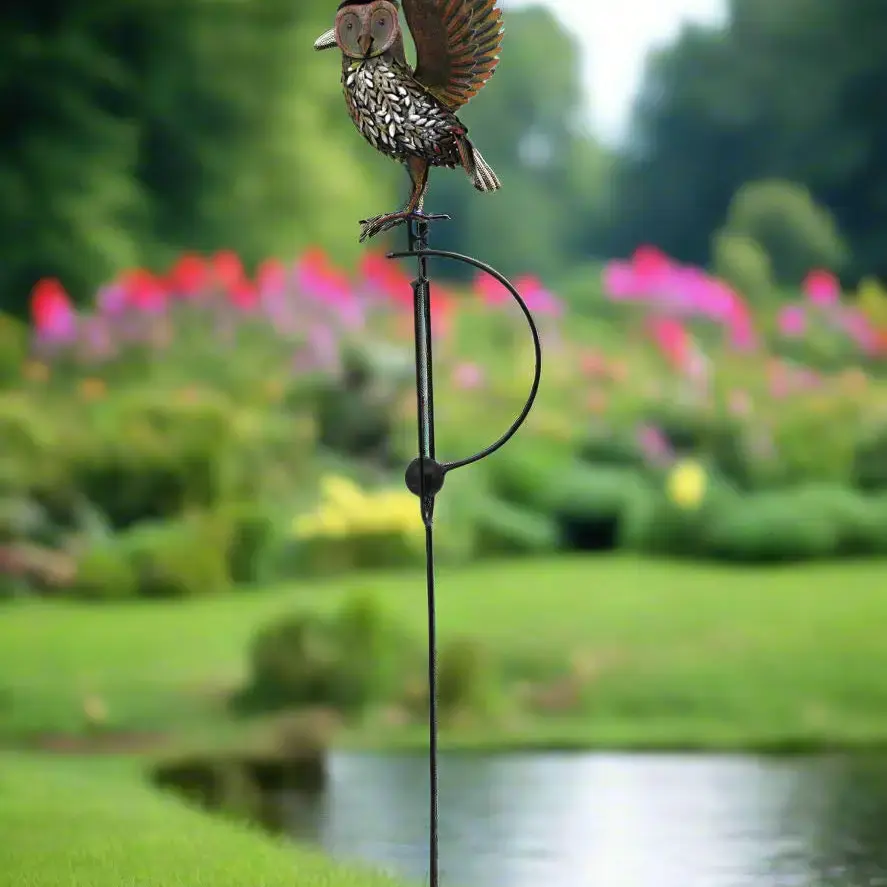 Bring charm and whimsy to your outdoor space with this 'Metal Owl Garden Rocker' from Marissa's Gifts. Crafted from durable powder-coated metal, this piece is designed to resist weathering while offering long-lasting beauty and functionality. The owl is finished in shades of earthy brown, capturing the warmth and natural tones of the outdoors. Subtle white brushing accents its surface, artfully highlighting the intricate feather patterns and details of its design. The contrast between the darker hues and the light brushing adds depth and texture, creating a lifelike yet stylized representation of the wise bird.