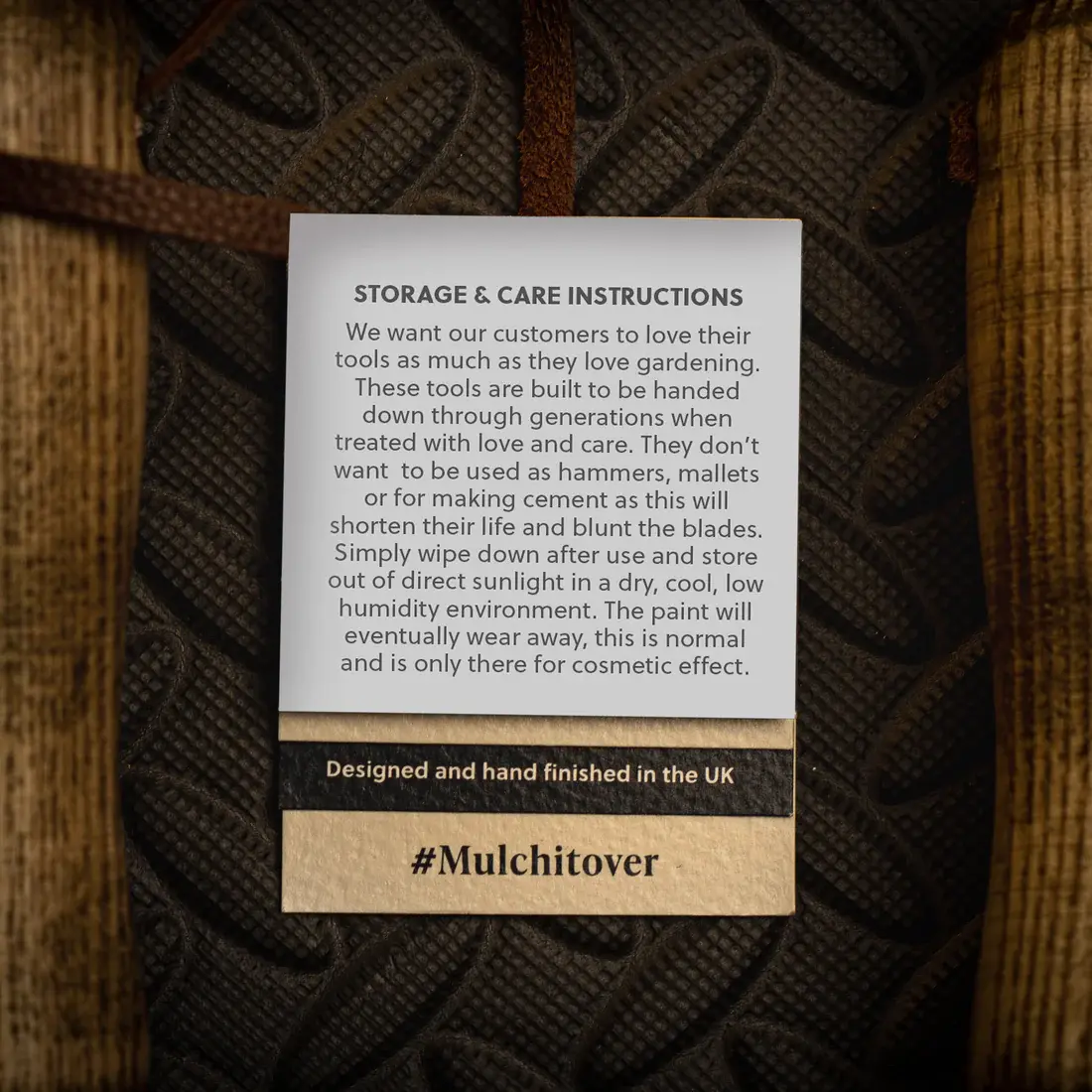 This garden trowel stands out as the finest among its kind, crafted for durability and toughness. Made from a single piece of strengthened high carbon steel to ensure extra strength and flexibility, it boasts a hardness of 42-45 on the HRC Scale due to its grade E9 steel, offering exceptional wear resistance. The handle is made from high-quality, straight-grained, British Standard 3823 grade ash, known for its durability, flexibility, and aesthetic appeal. Designed and hand-finished in the UK, each ash handle is hand-stained, and the trowel half polished for an attractive shine. Available in soft mulberry, with a beautiful matt finish for a good feel in the hand.